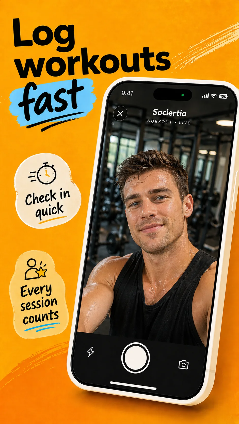 Sociertio uses account, streak, check-in, notification, photo, and subscription data only to run the app experience. Your auth credentials, payment details, private session tokens, and device notification token are not shared with your buddy.